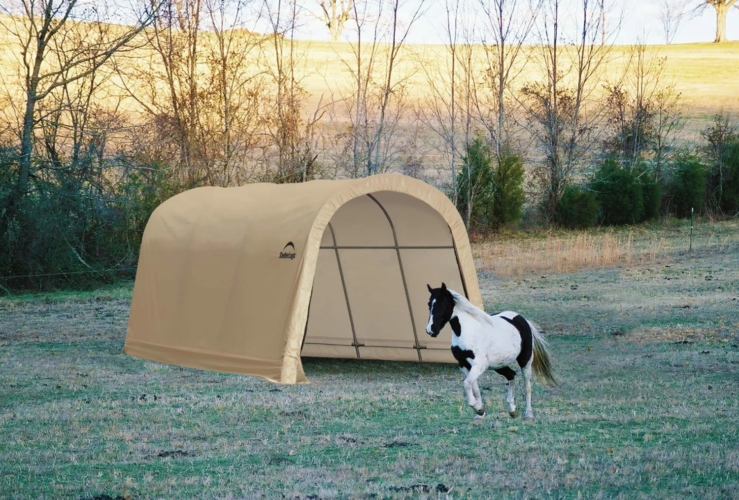 The ShelterLogic 3-in-1 Shelter Multi-Purpose Shelter and Storage is a multi-purpose shelter and storage solution. Ideal for storing hay and grain, protecting animals from sun, wind and rain, or compact autos. Sturdy 1-3/8 in. high-grade steel frame with powder coat finish will not chip, peel, rust or corrode. 4-rib frame design delivers ultimate strength, ease of installation, portability and best in category value.
