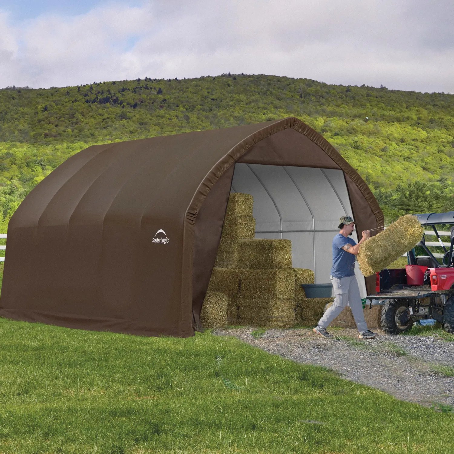 The ShelterLogic 13 x 20 x 12 ft. 3-in-1 Alpine Barn can be used in the pasture to protect horses, goats, pigs, and more from the elements. Additionally, it can be used to keep agriculture supplies such as feed, food, and seed dry. What’s more, the run-in shelter can be used as a shed to protect and store farm equipment and tools.