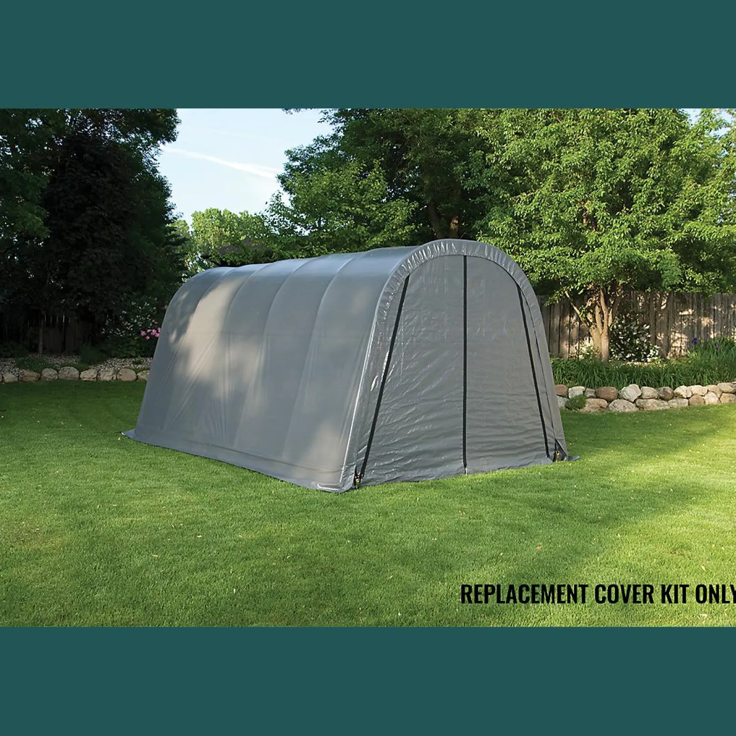 The Garage-in-a-Box® Round Replacement Cover Kit replaces your existing ShelterLogic Garage-in-a-Box® Round cover and end panels. The 100% waterproof ShelterLogic fabric replacement cover is made strong and has been UV treated inside and out to prevent and reduce fading and deterioration from harmful UV rays. Available in Standard, Heavy Duty 14.5 oz. and Ultra Duty 21.5 oz. See the chart for details. COVER KIT ONLY, FRAME SOLD SEPARATELY.