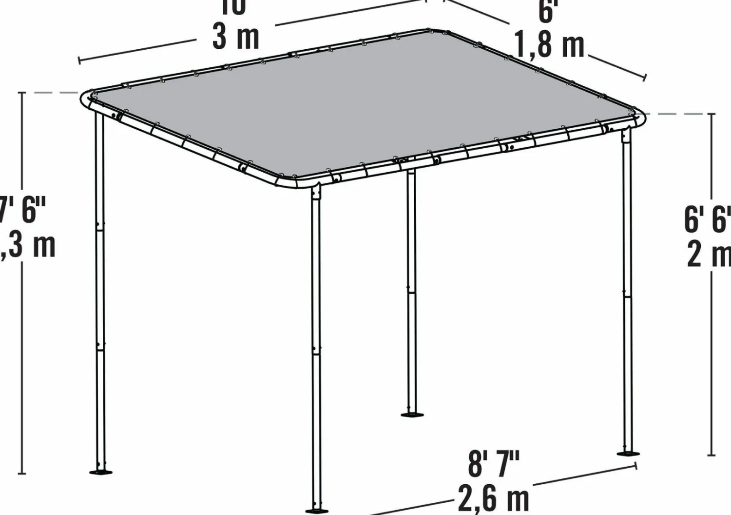 | Included Items | 2″ steel Frame, Polyester Cover, Spike Temporary Anchors |