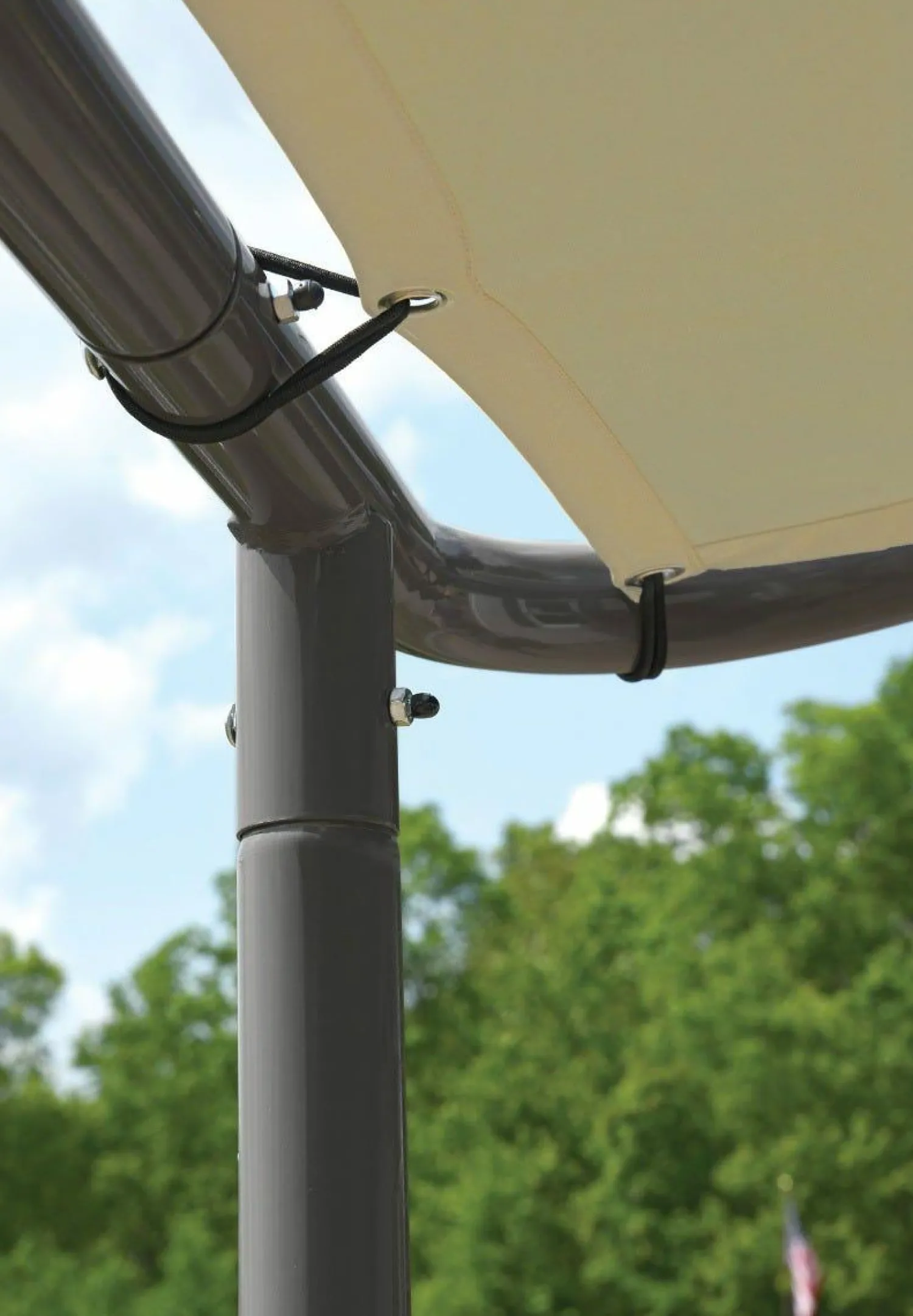 - EASY COVER ASSEMBLY – The canopy cover is easily installed with bungees that encircle the cross beams.