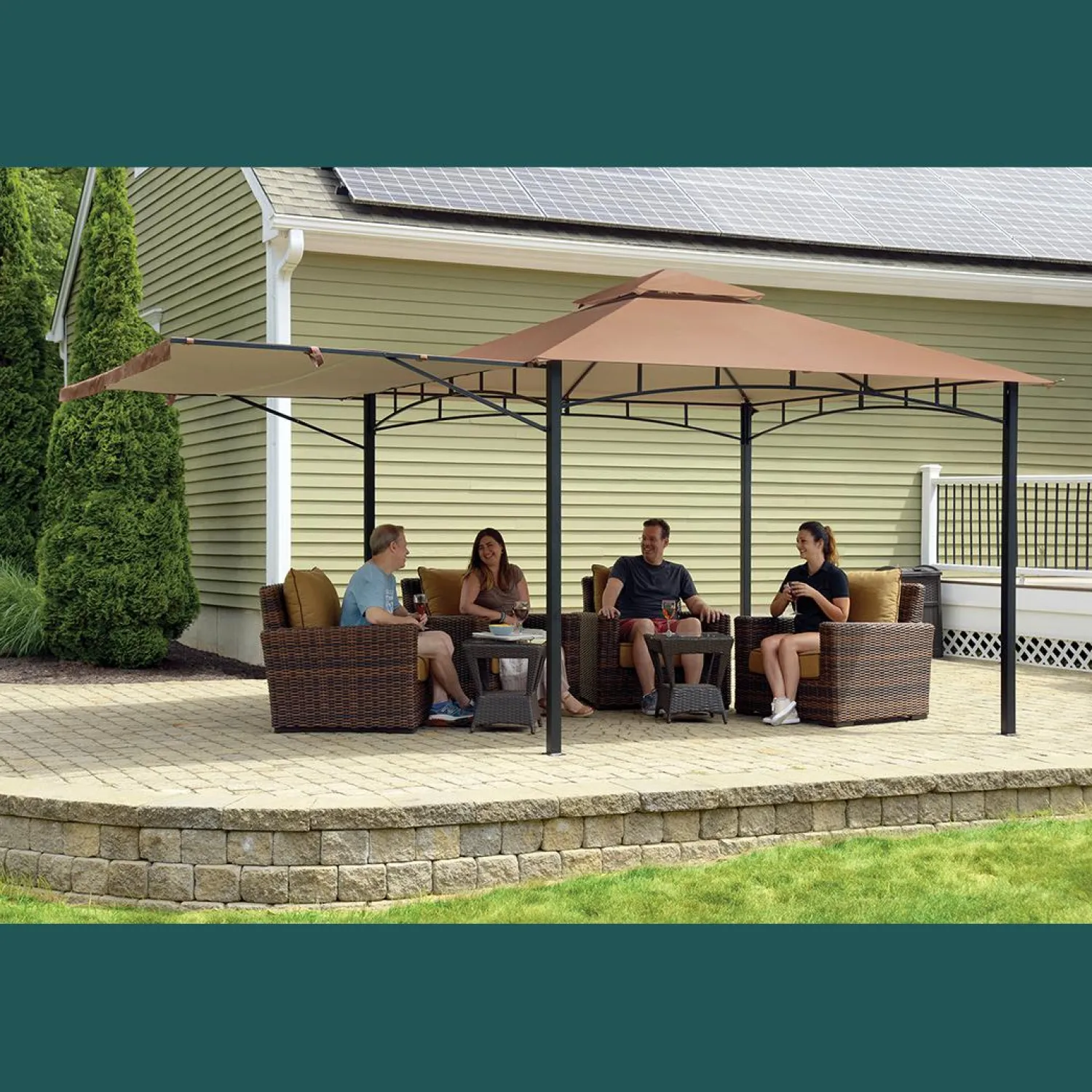 Looking for a versatile and attractive backyard Gazebo? The Redwood Gazebo from ShelterLogic is a stunning and versatile addition to any backyard space. The Redwood Gazebo 11 x 11 ft. features a sturdy steel frame and a durable ripstop, water resistant cover attachment. The retractable awning makes this a versatile structure that offers extra shade protection and can also be used as a wall to protect guests against the elements. Get incredible style at an amazing price with the Redwood 11 x 11 ft. Gazebo.