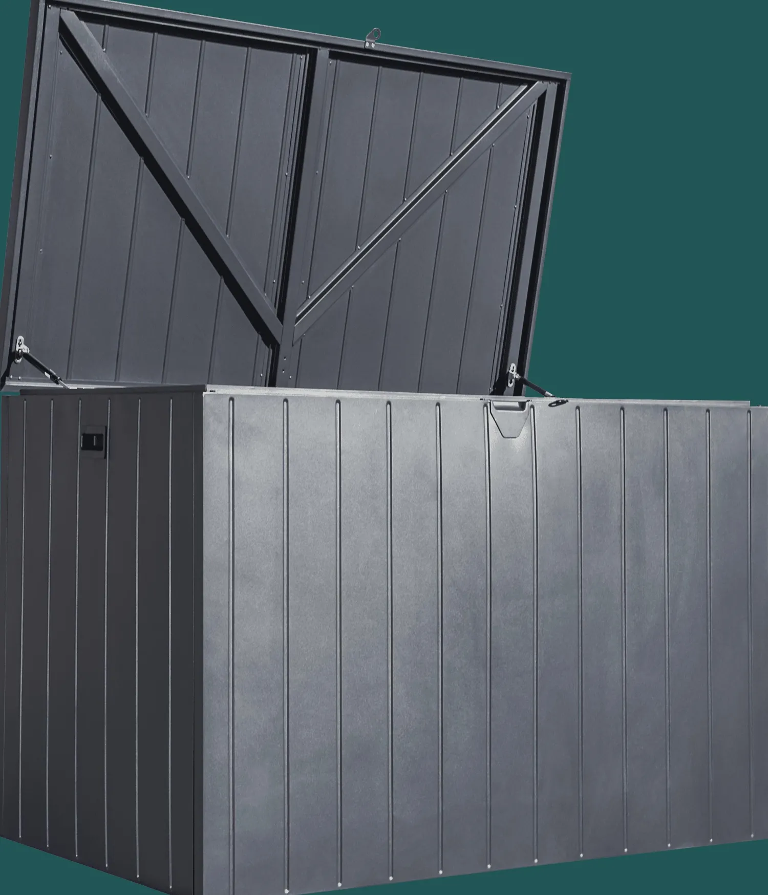 - The HDG steel has a powder coated finish that prevents rust and corrosion and keeps your deck box looking new