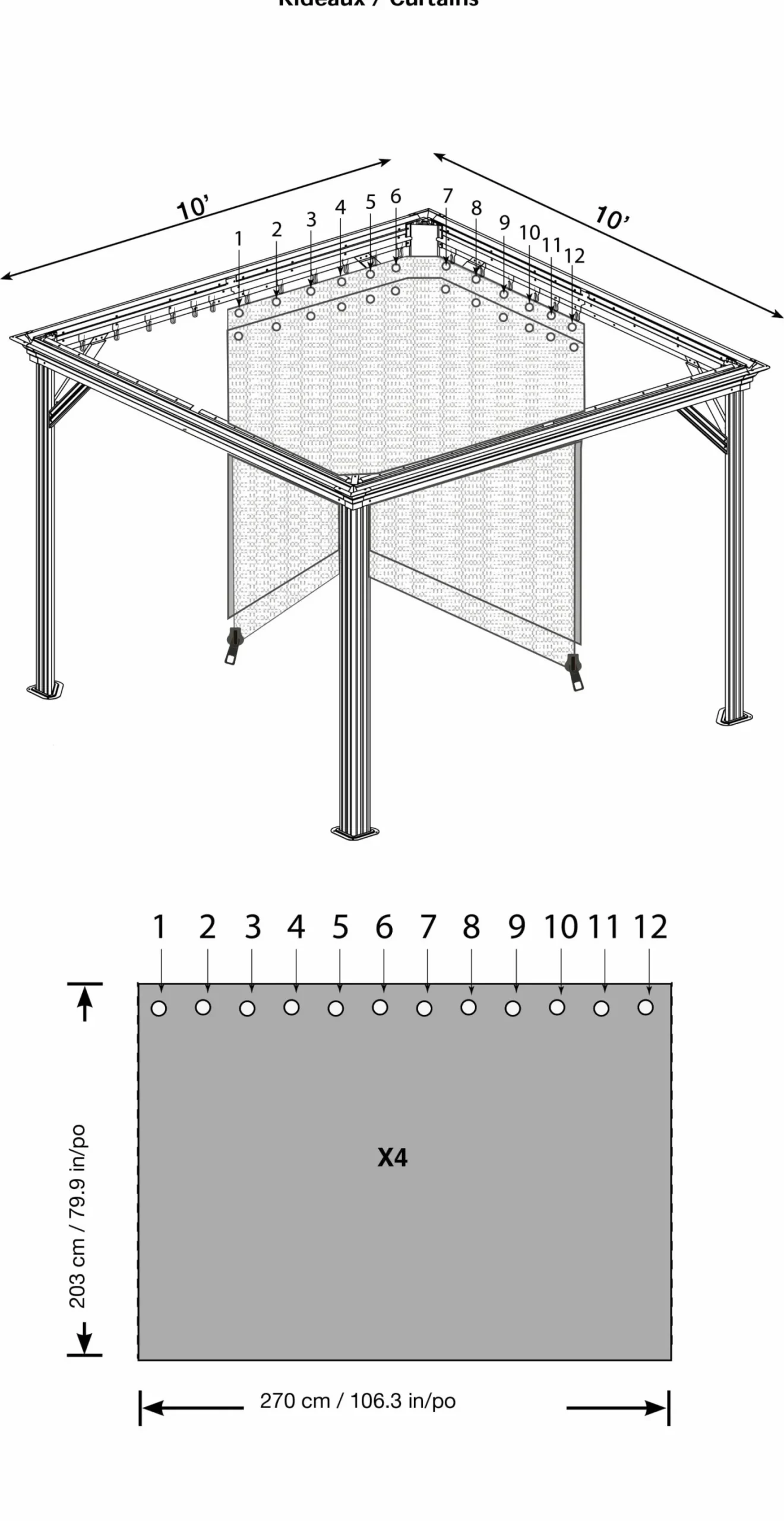 - INCLUDED COMPONENTS: Hooks to hang the curtains to the structure. Zippers to enclose the gazebo for privacy