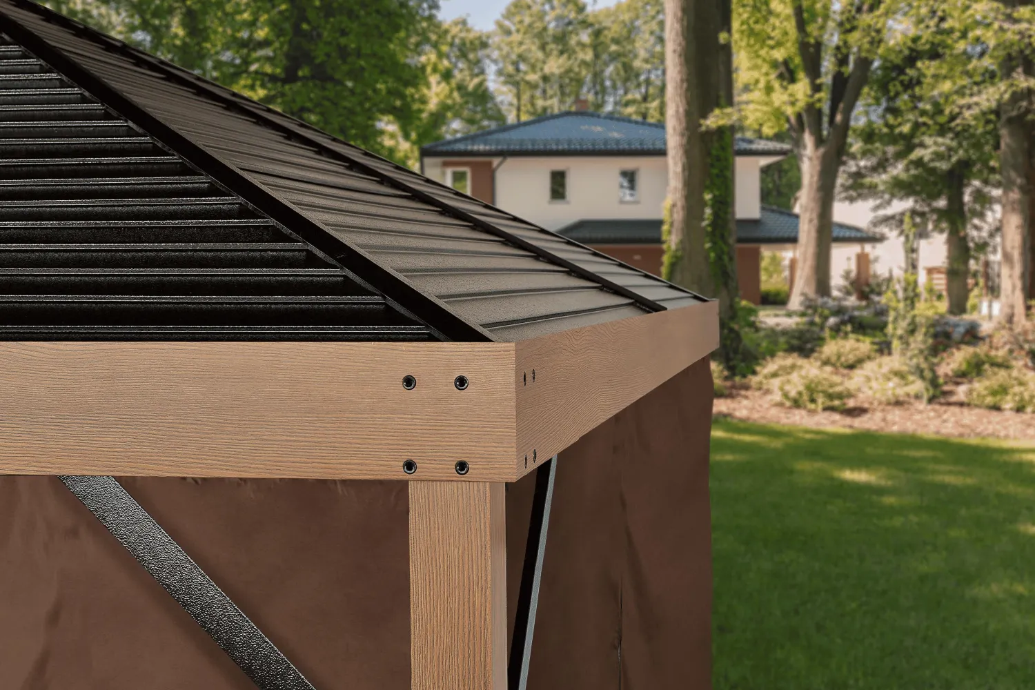 Sojag Gazebo Curtains-Sanibel Wood Effect Gazebo 10 x 10 x 7 ft Dark Brown Polyester Curtains