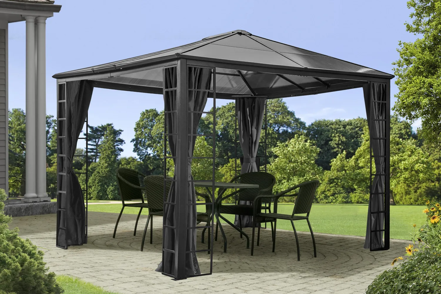 - INCLUDED COMPONENTS: Hooks to hang the curtains to the structure. Zippers to enclose the gazebo for privacy