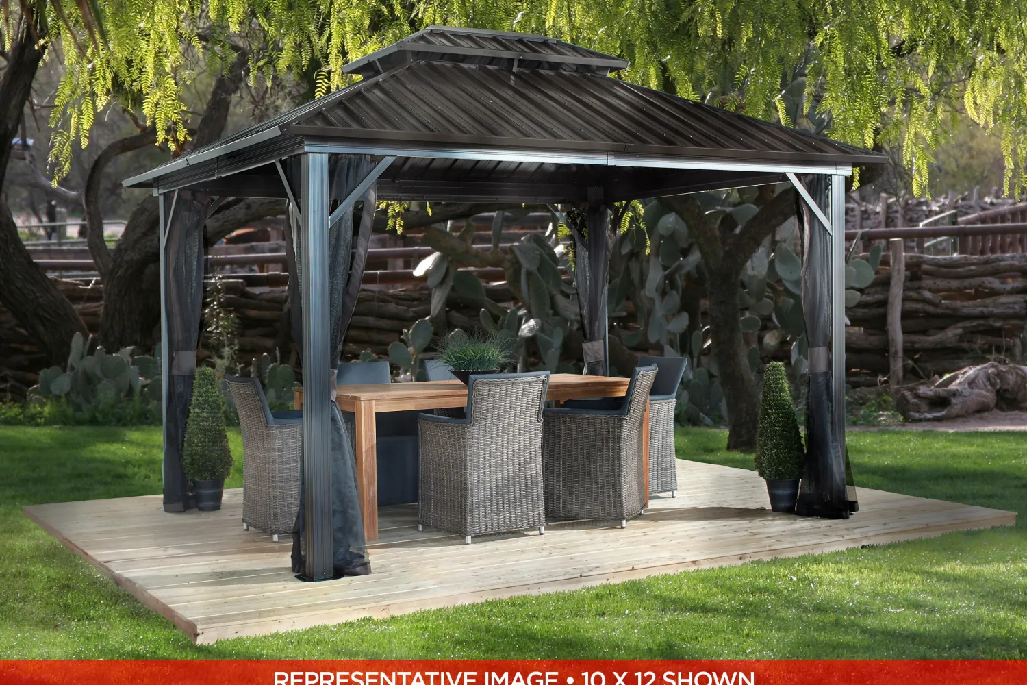 Sojag Hard-Top Gazebos-Genova II 12 x 12 ft Dark Brown Gazebo