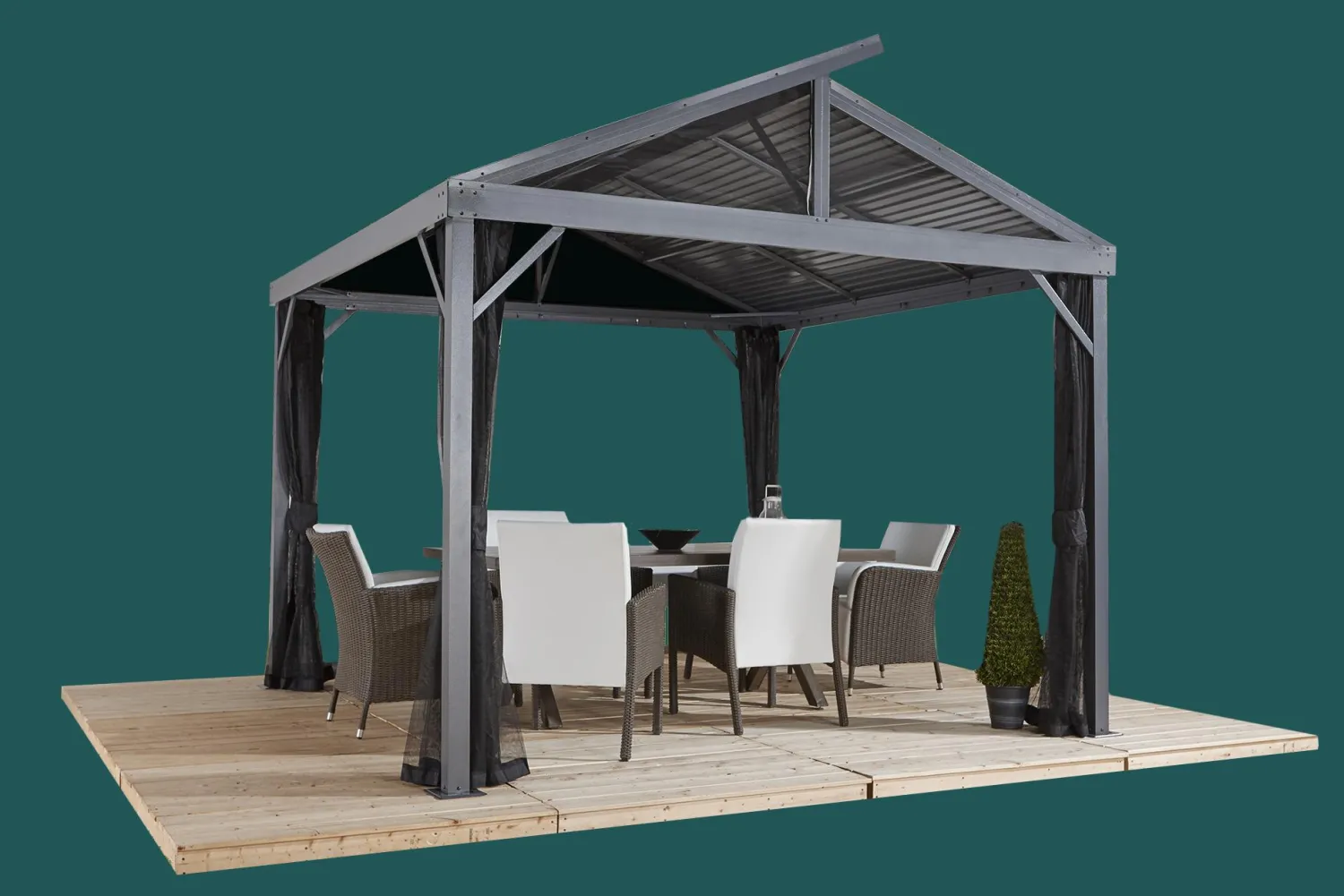 - Although an all-season gazebo, any accumulation of snow should always be removed from the roof