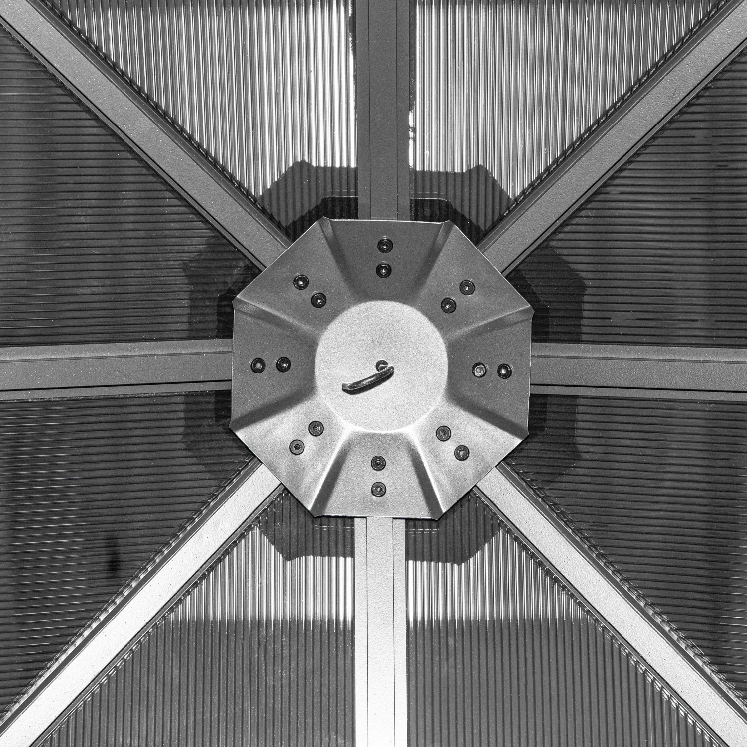 - Roof made of 6 mm (0.2 in.) UV protected tinted polycarbonate panels
