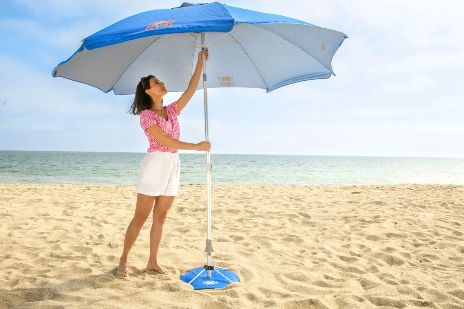 When you need a beach umbrella with style and ultimate durability, add the Tommy Bahama 6 ft. Beach Umbrella with patent pending ANCHORX™ to your list of must-have outdoor accessories. This umbrella features added wind stability with the new ANCHORX™ system for windy beach days. The tilt feature offers the option to adjust shade as the sun moves. The powder coated steel pole fends off rust and corrosion to keep your umbrella performing in the elements. Recommended by the Skin Cancer Foundation, the polyester fabric is both durable and gorgeous for a stylish and functional beach accessory for all your outdoor adventures.